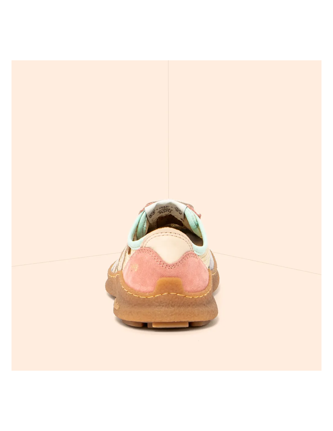 realizada con tejido producido con materiales respetuosos con el medio ambiente, pensando en ti, pero imitando texturas y aspecto de piel, y con suela de goma 100% reciclada.