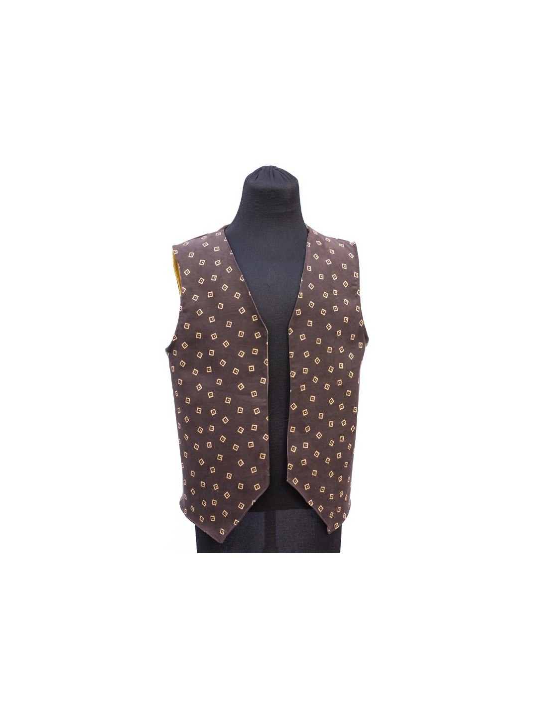 Chalequillo Hombre reversible realizado en tejido de algodón marrón con cuadros beige y el interior de algodón beige.