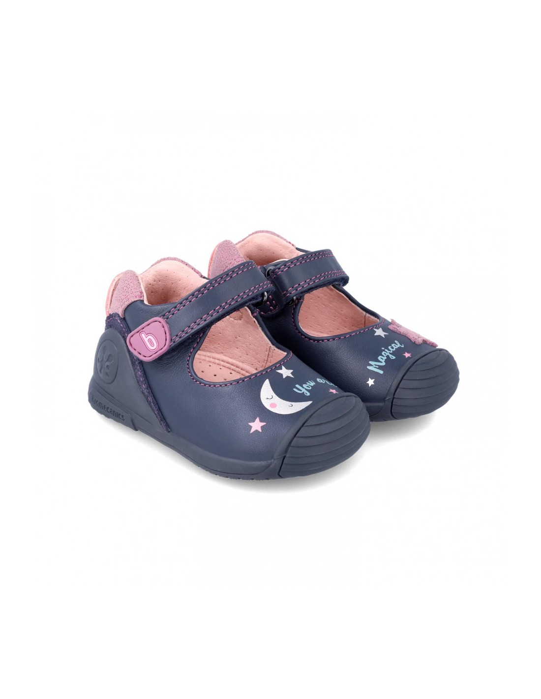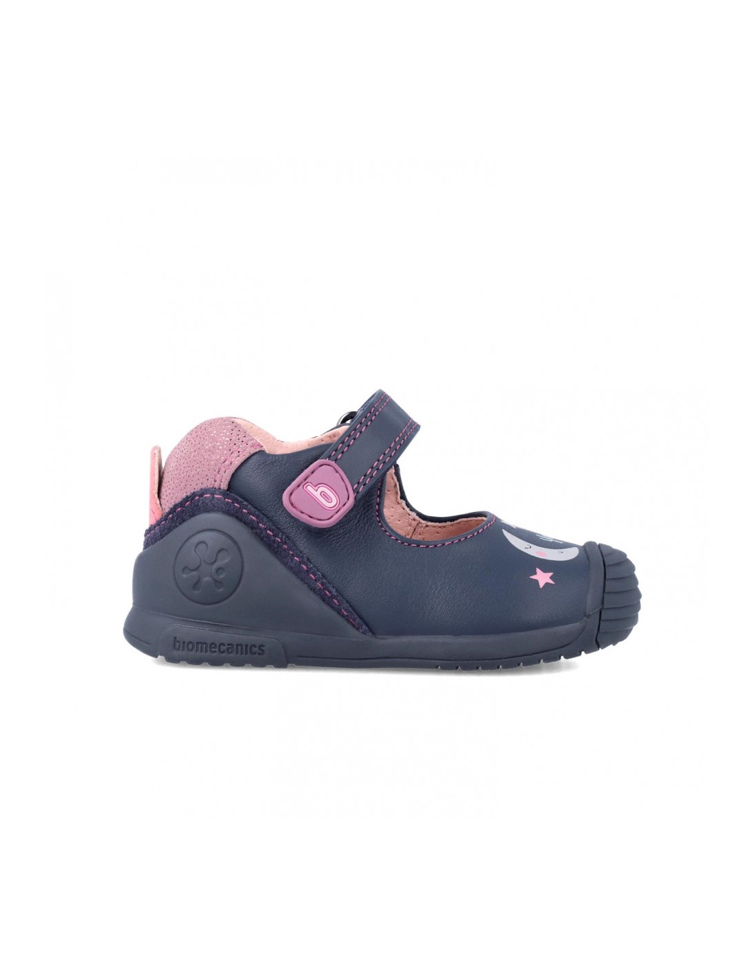 Merceditas Biogateo de BIOMECANICS modelo 231104-A, confeccionado con materiales naturales, libres de cromo y níquel, que gracias a su plantilla extraíble antibacterias de piel, el estabilizador lateral y la suela Biomecánica pata de elfante, ayudará a su hijo a sus primeros pasos.