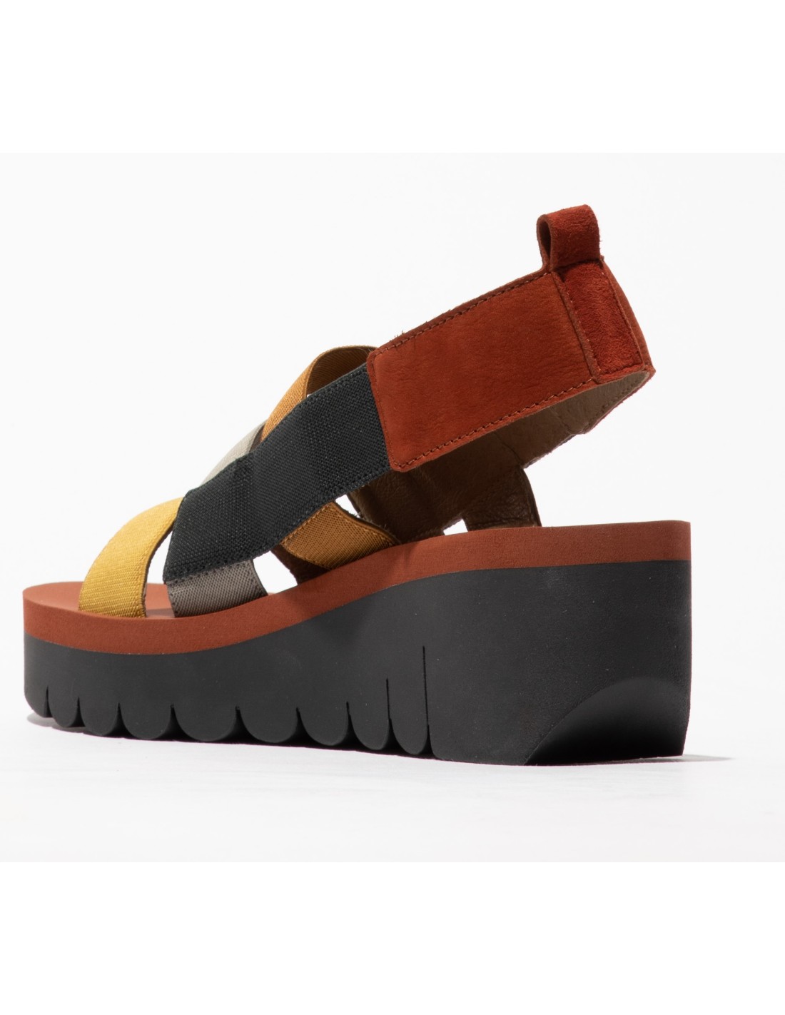 sandalia de mujer de cuña de Fly London, modelo YERE 847, de la línea Yoko.